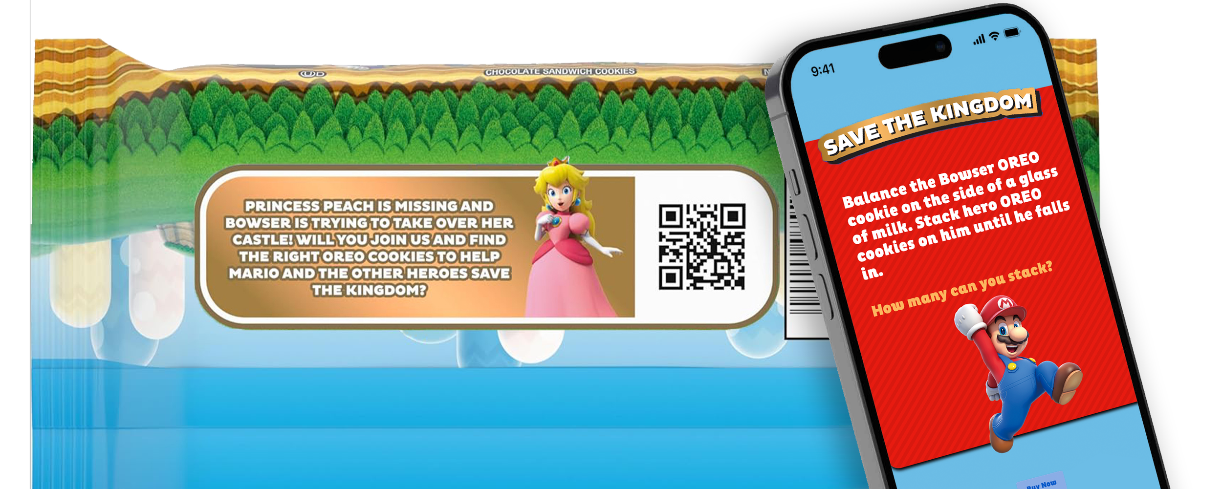 We released a special edition OREO pack with sixteen unique embossments, with each representing a character, power-up, or concept. Each pack functioned as an access point into a shared system: a QR code transported users to the rules of a collaborative Super Mario game built around a real-time global progress tracker. This tracker displayed collective progress toward a common objective: dunking Bowser in milk.